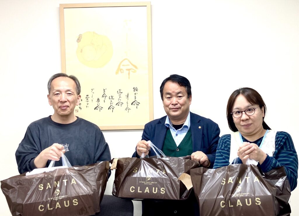社会福祉法人 中部少年学院にサンタクロースさんで作って頂いた沢山のケーキを有限会社 山田仏壇店 やまだセレモニーは、社会貢献として持って行きました。大変喜んで頂きました。中川施設長等に対応して頂きました。今年も何とか持って行けました。来年もお待ちできるように山田仏壇店は頑張ります